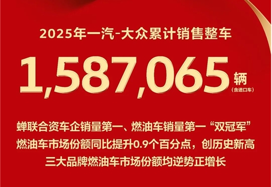 一汽大众2025年全年销量1587065辆