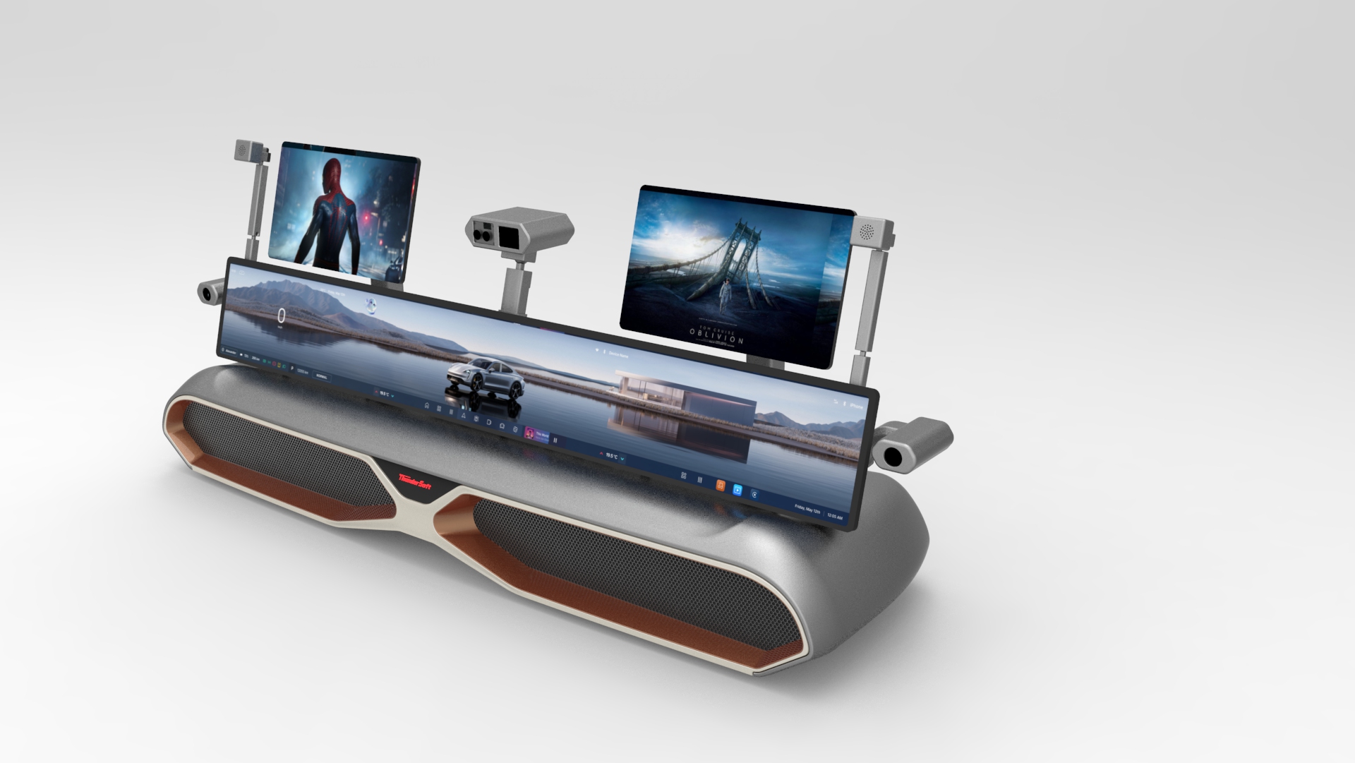 13"双屏多曲率一体黑车载OLED显示屏